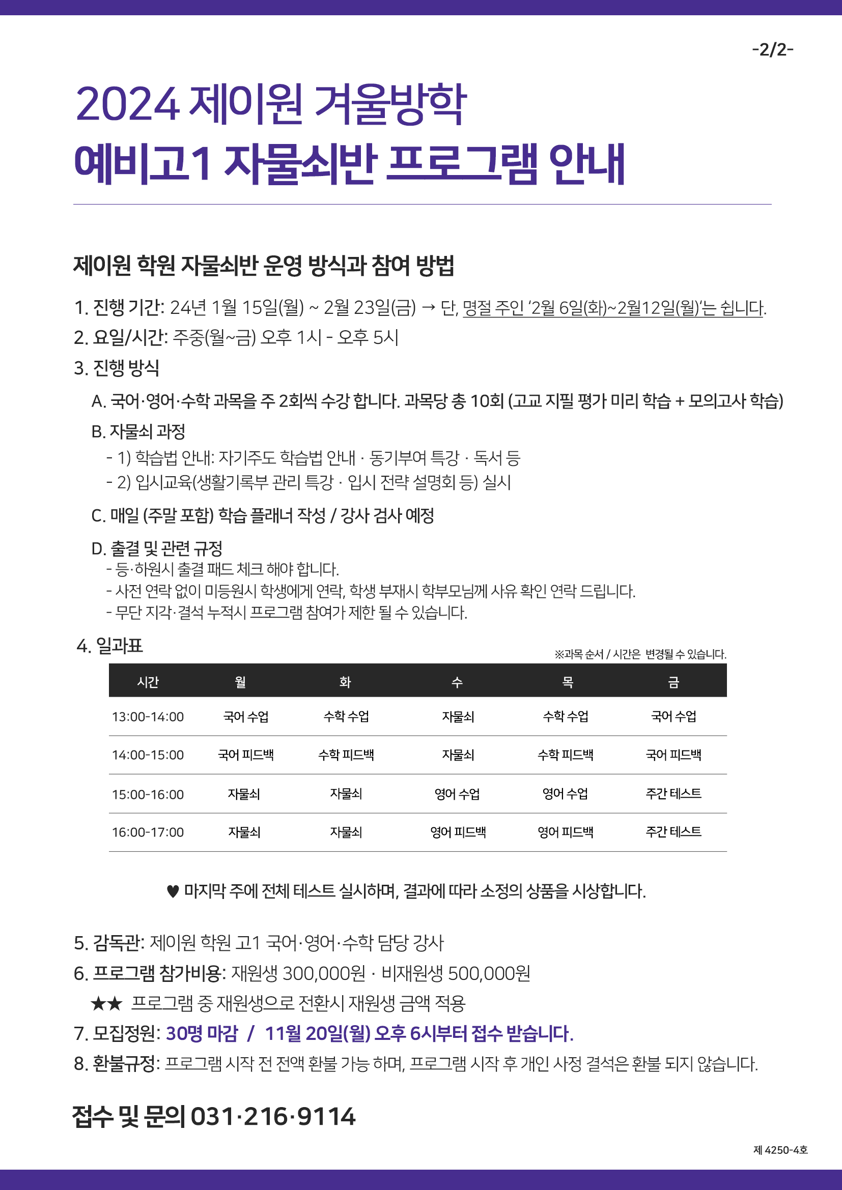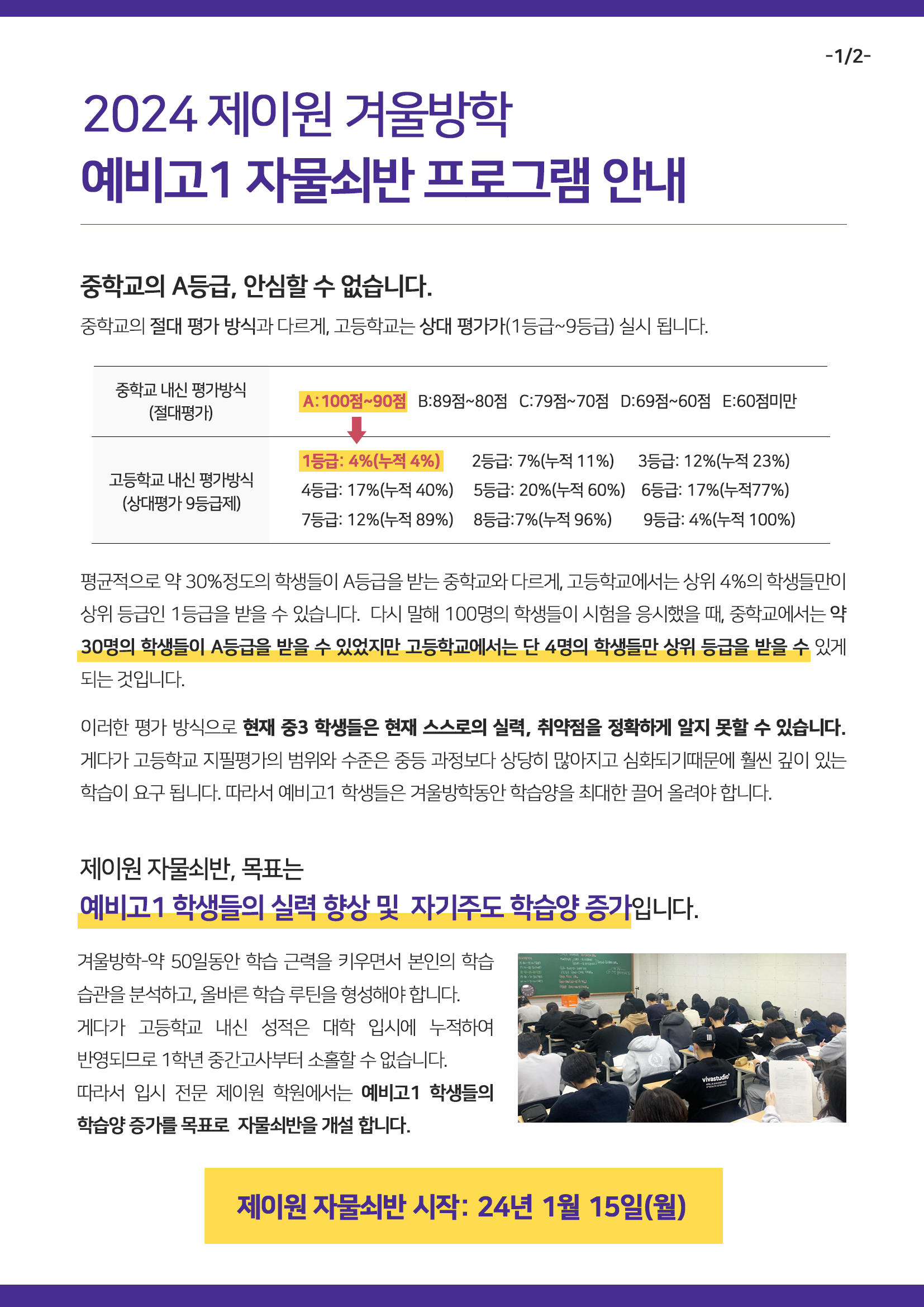 ✅ 제이원 학원 예비고1 전용 프로그램 자물쇠반