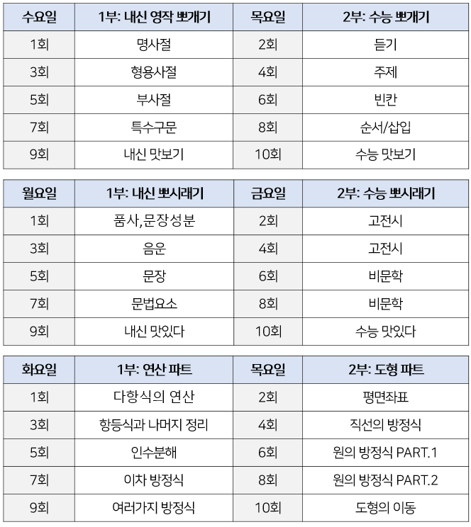 ※ 오직 예비고1 학생들을 위해 기획된 프로그램이므로, 예비고1 학생들은 텐투텐보다 자물쇠반을 추천 드립니다.
