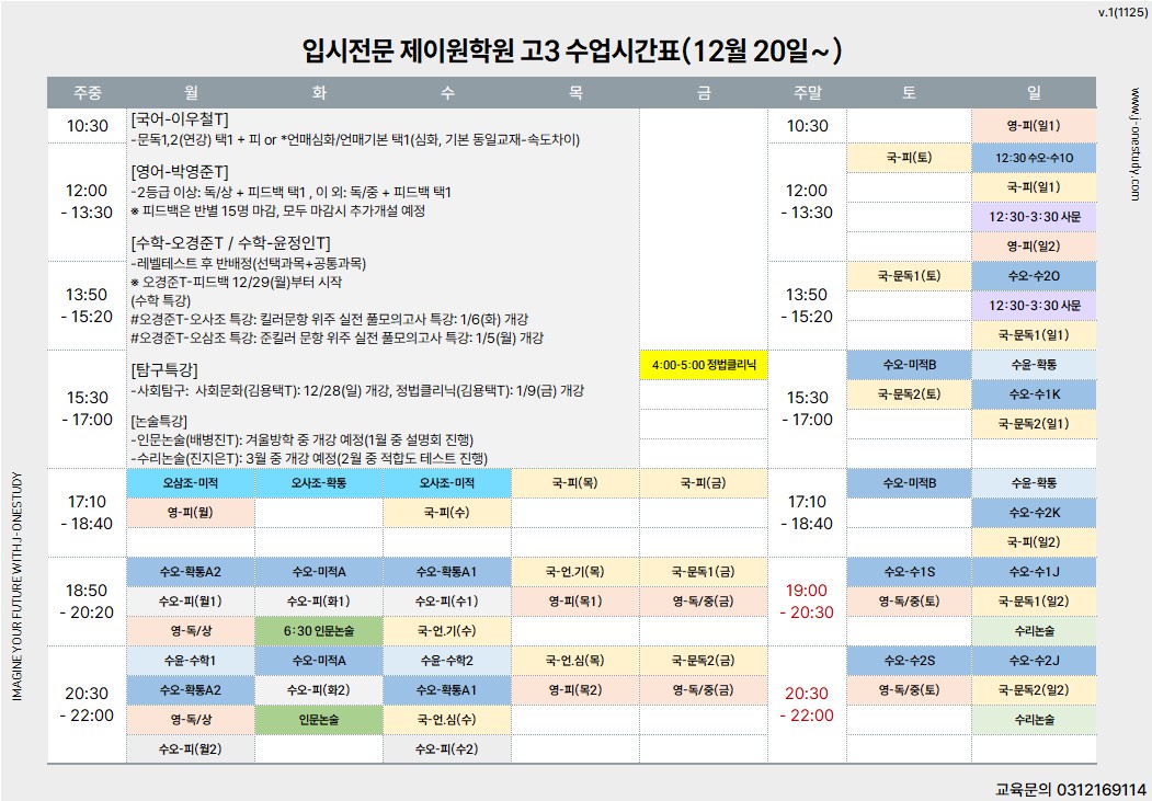 ※ 12/31-1/1 은 학원 겨울방학이라 정규 및 특강 수업이 진행 되지 않습니다.