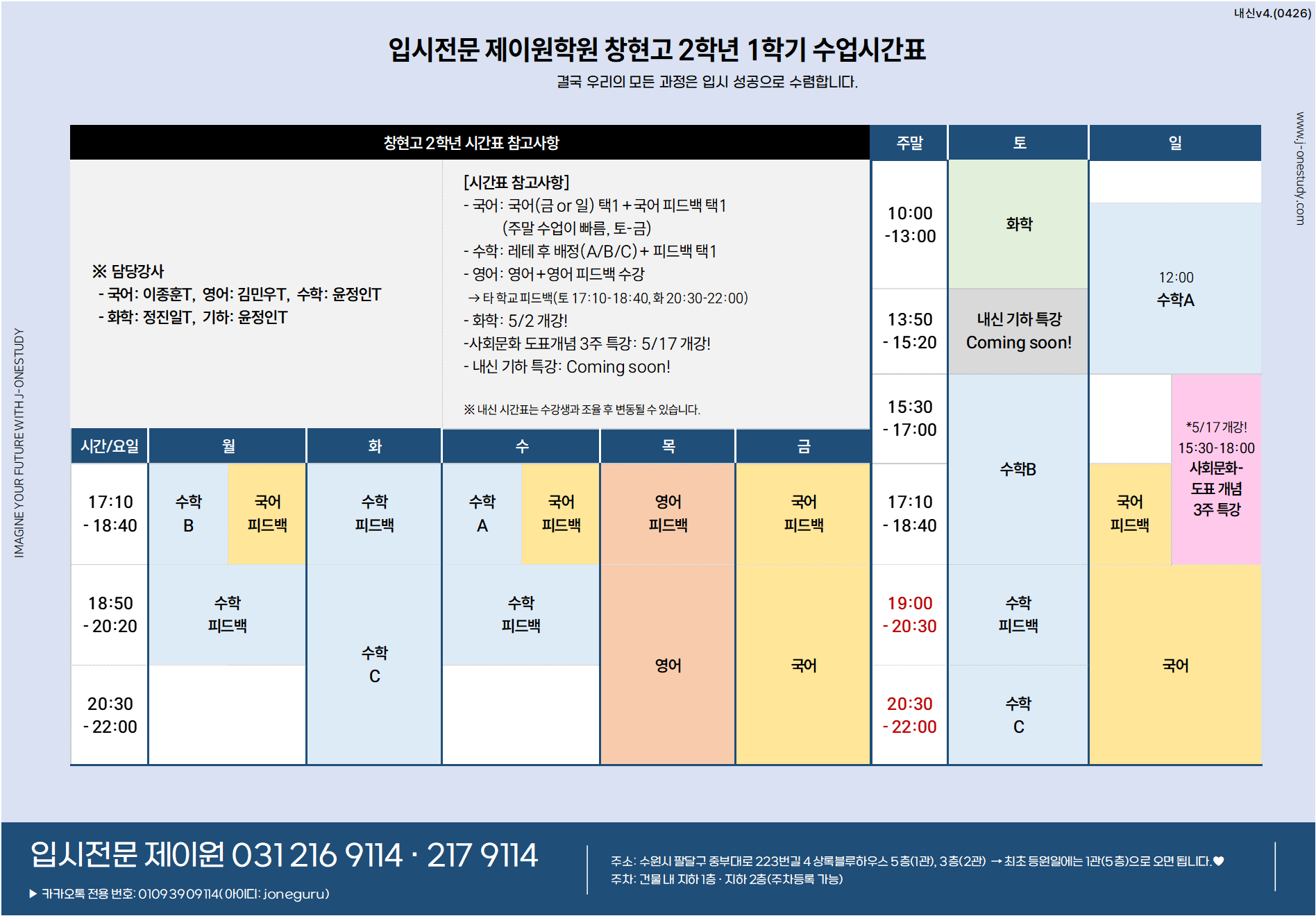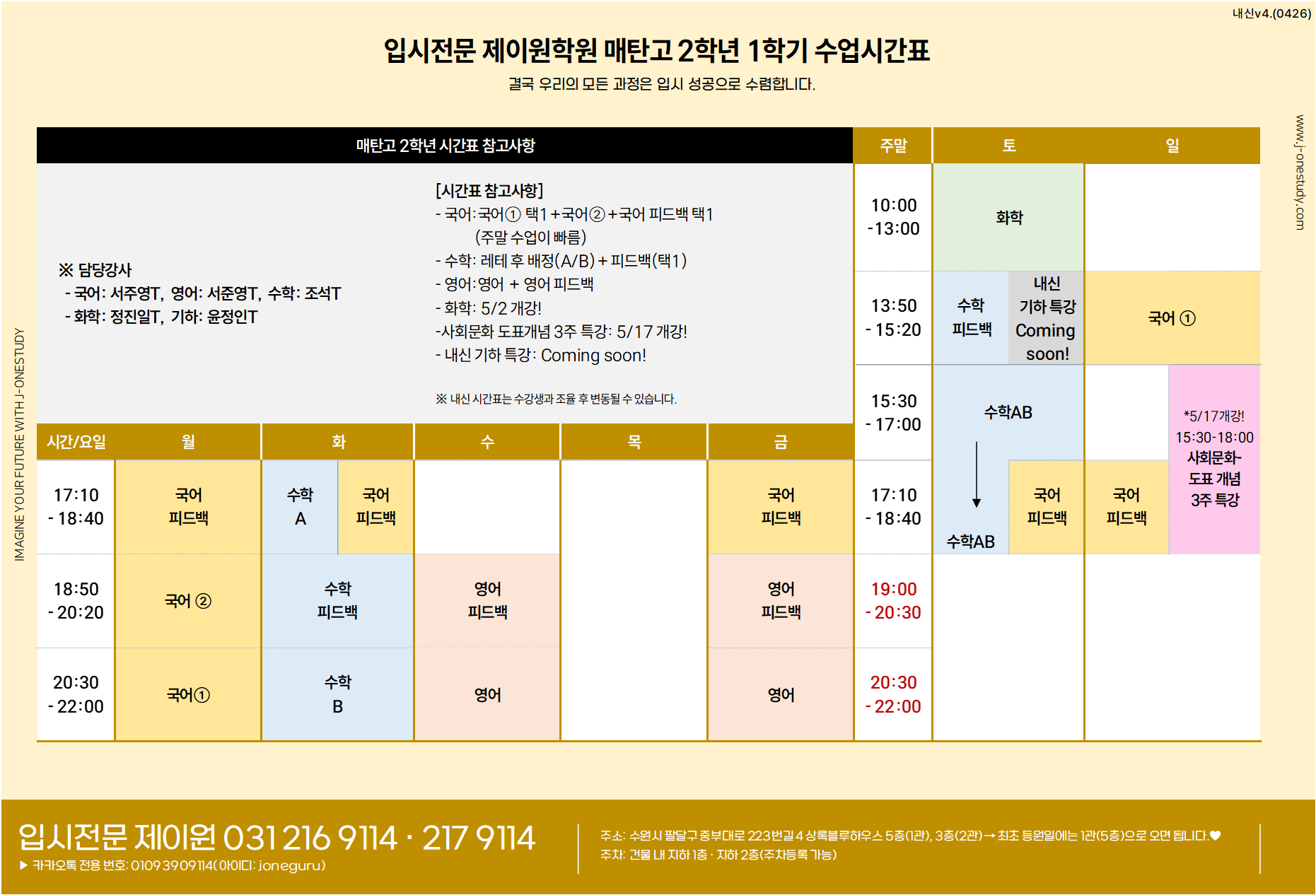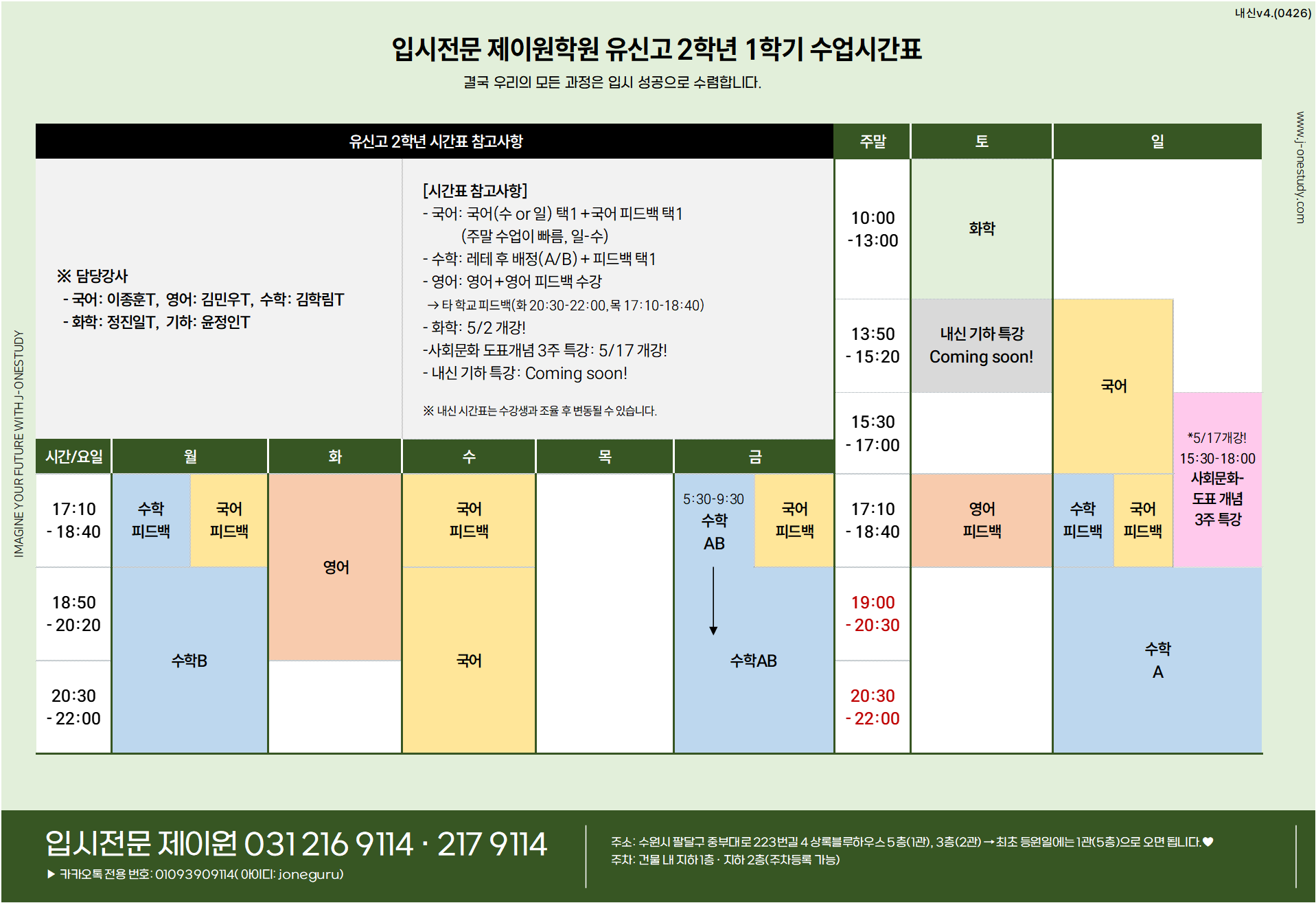 변경된 사항은 정기적으로 방문하셔서 내용을 확인해 주십시오. 만약 변경사항에 의문이 있으실 때엔 언제든 개인정보관리자(yul_academy@naver.com) 에게 문의해 주십시오