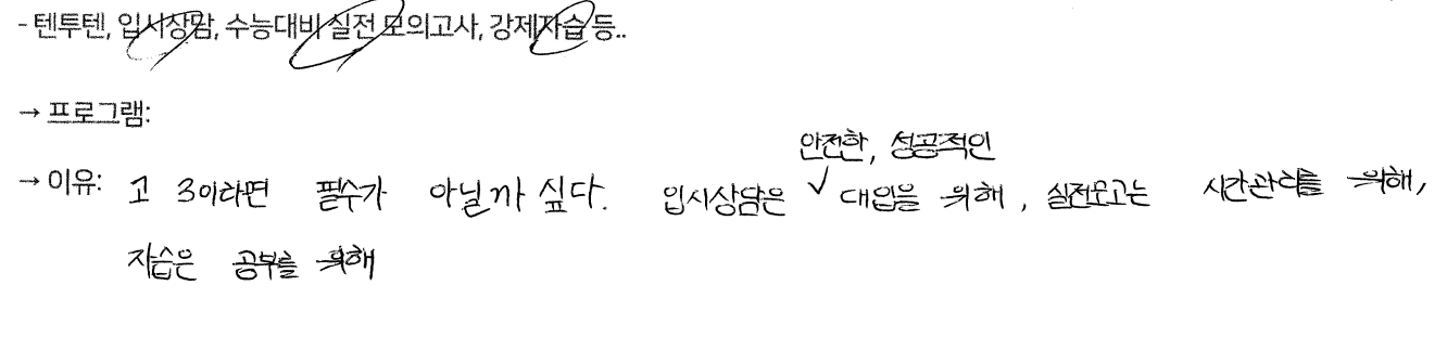 고3이라면 텐투텐, 입시상담, 강제자습은 필수가 아닐까 싶다.