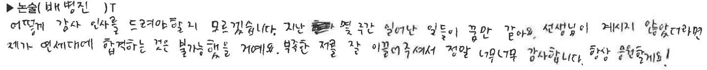 선생님이 계시지 않았더라면 제가 연세대에 합격하는 것은 불가능했을 거예요.