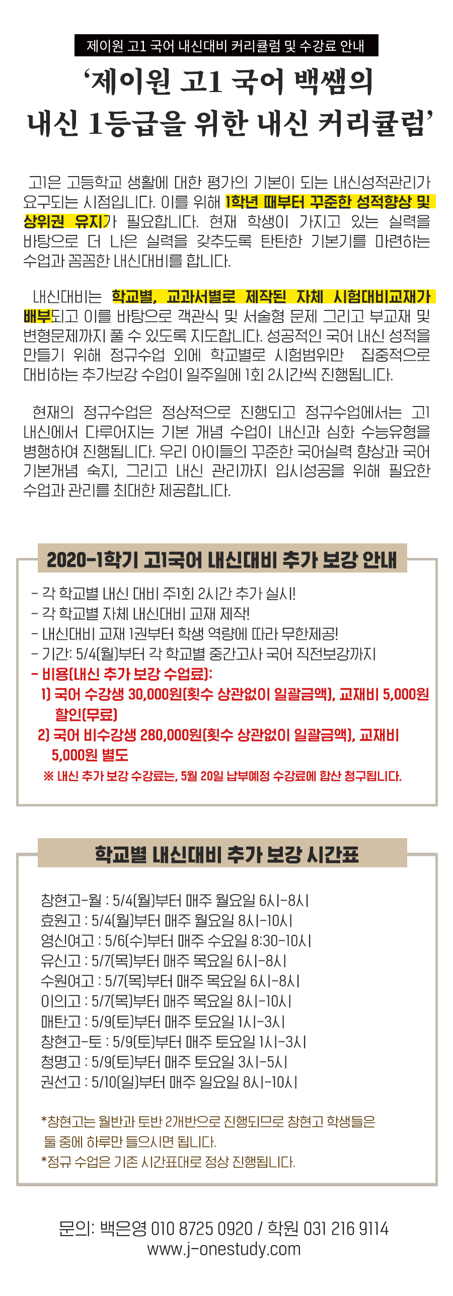 홈 학원안내 프로그램 고1 국어 내신보강 추가수업안내