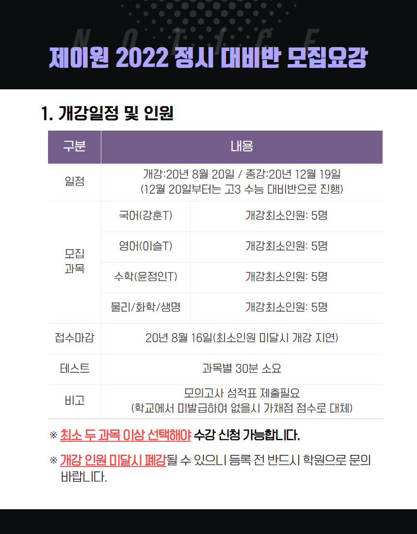 ★제이원 2022 정시 대비반 1기 모집 안내★