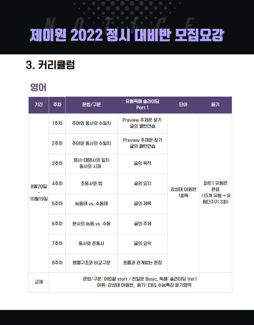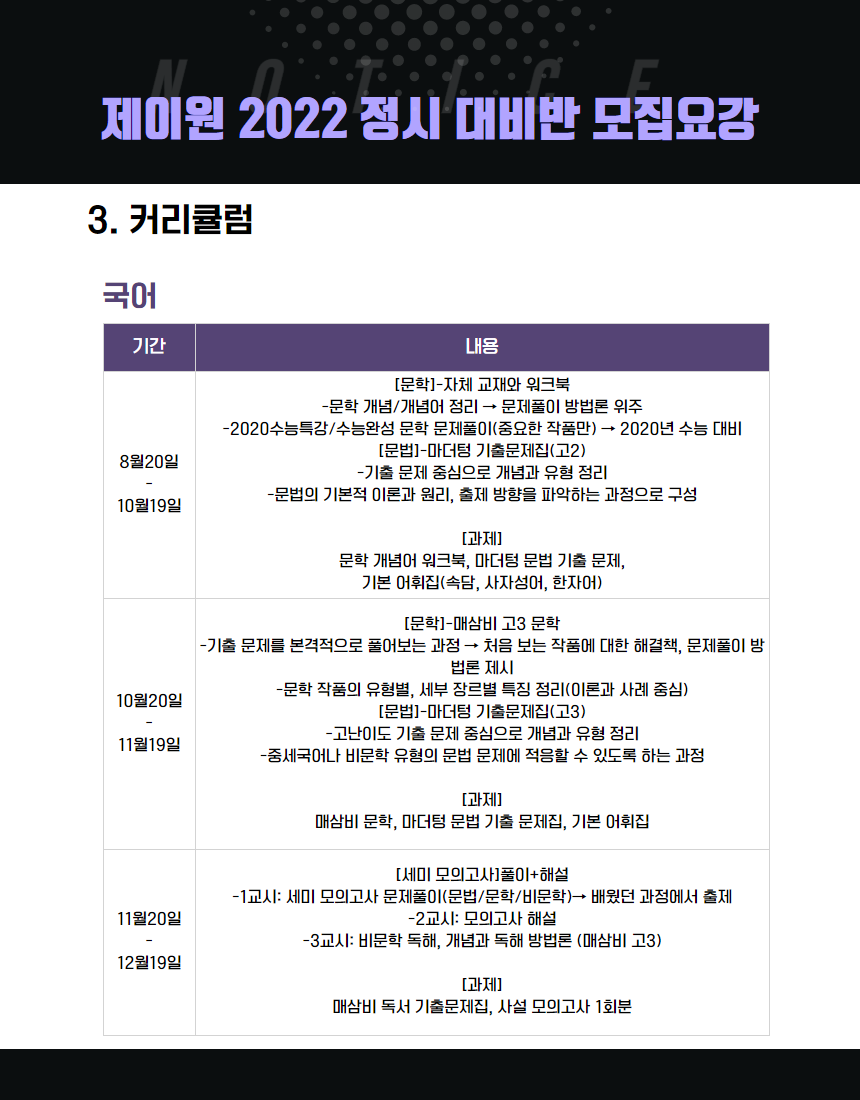 입시전문 제이원 학원에서 2022 정시대비반 1기 수강생들을 모집합니다.