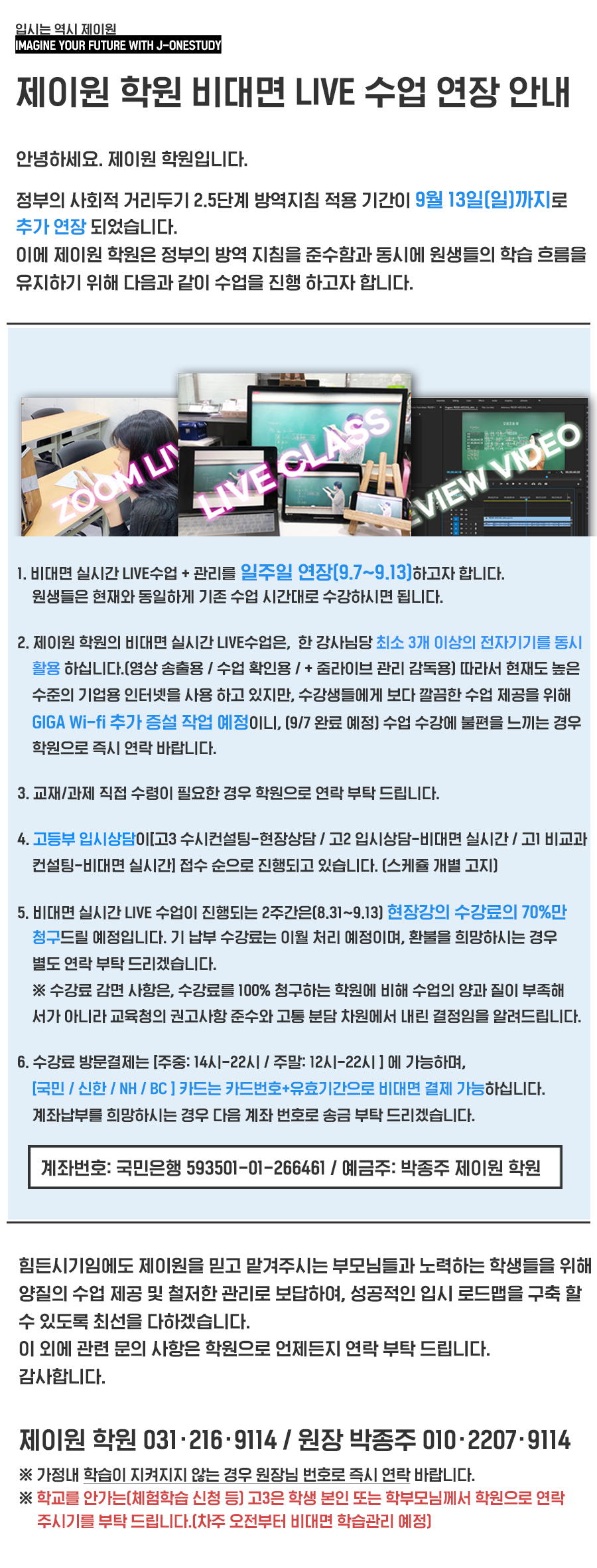 홈 학원안내 프로그램 제이원 비대면 수업 관련 2차 공지