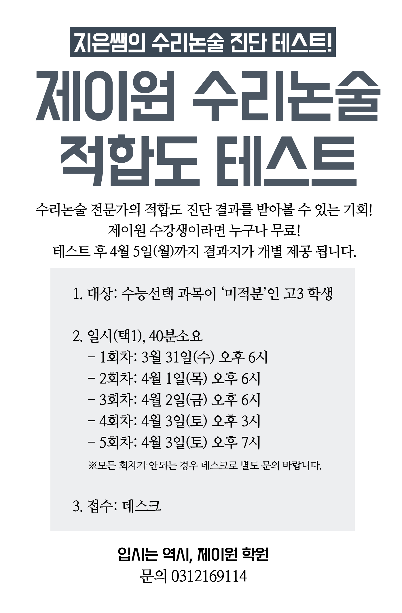 홈 학원안내 프로그램 ♡수리논술반 개강(적합도 테스트 진행)
