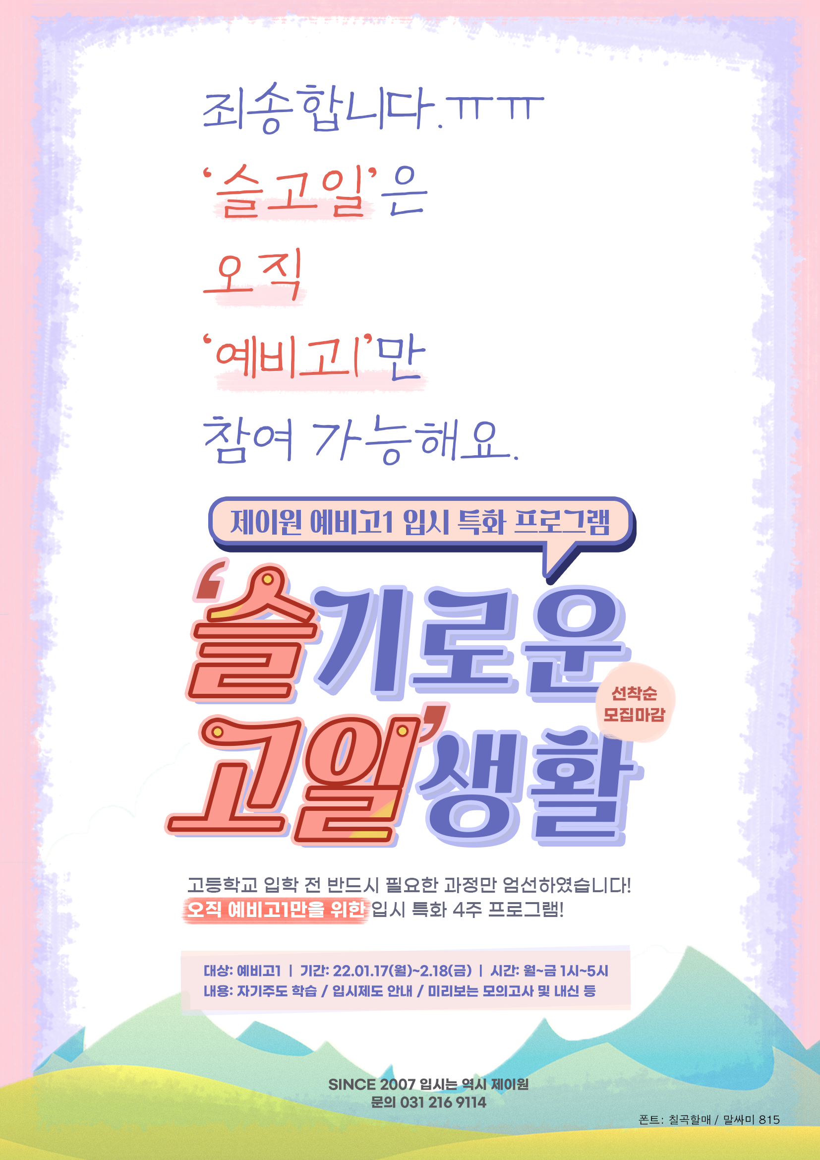 >> 제이원 윈터스쿨: 예비고1 입시 특화 프로그램 슬고일 !! <<