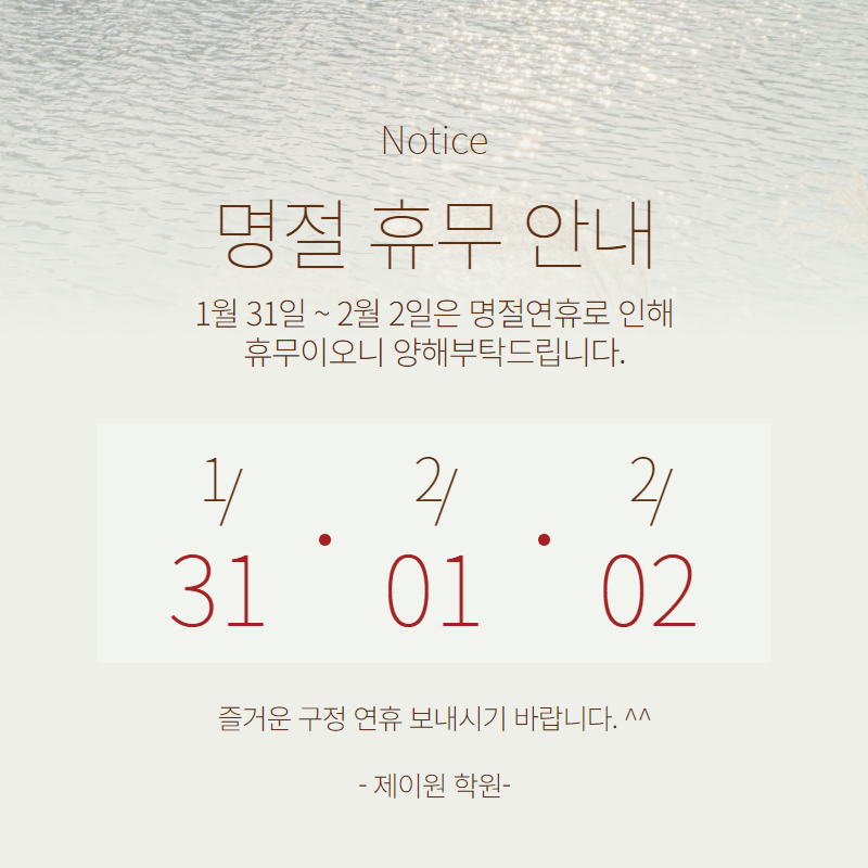 홈 학원안내 프로그램 명절연휴 운영안내(1/31~2/2)