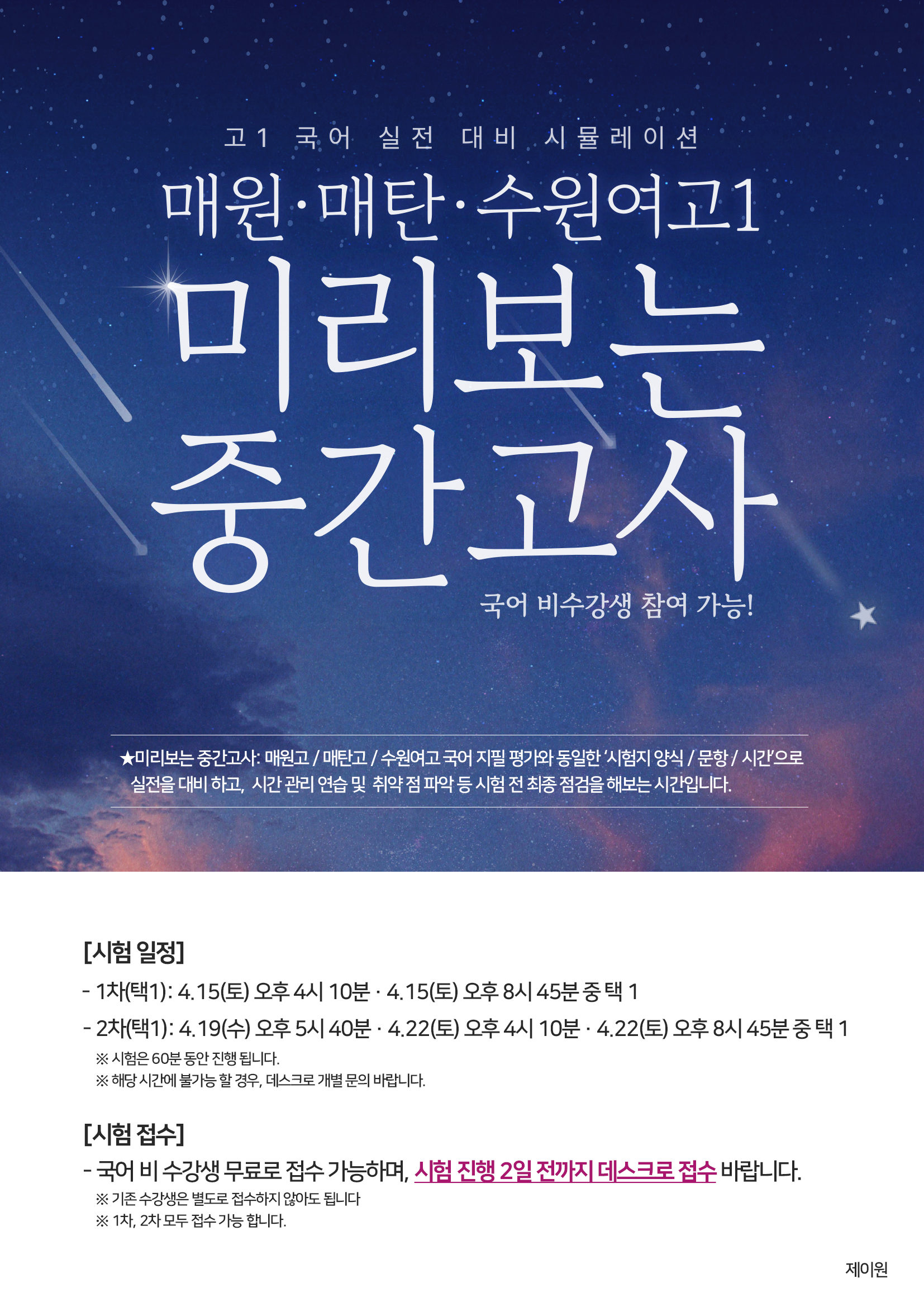 홈 학원안내 프로그램 매원/매탄/수원여고 국어 미리보는 중간고사