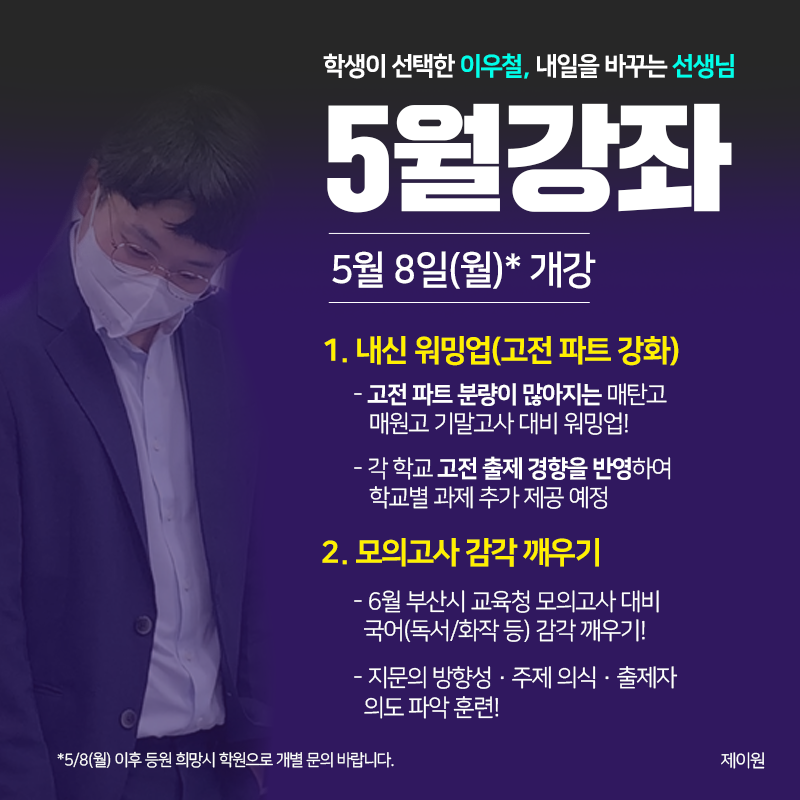 [국어 이우철T] 고2 / 고3 5월 개강 안내