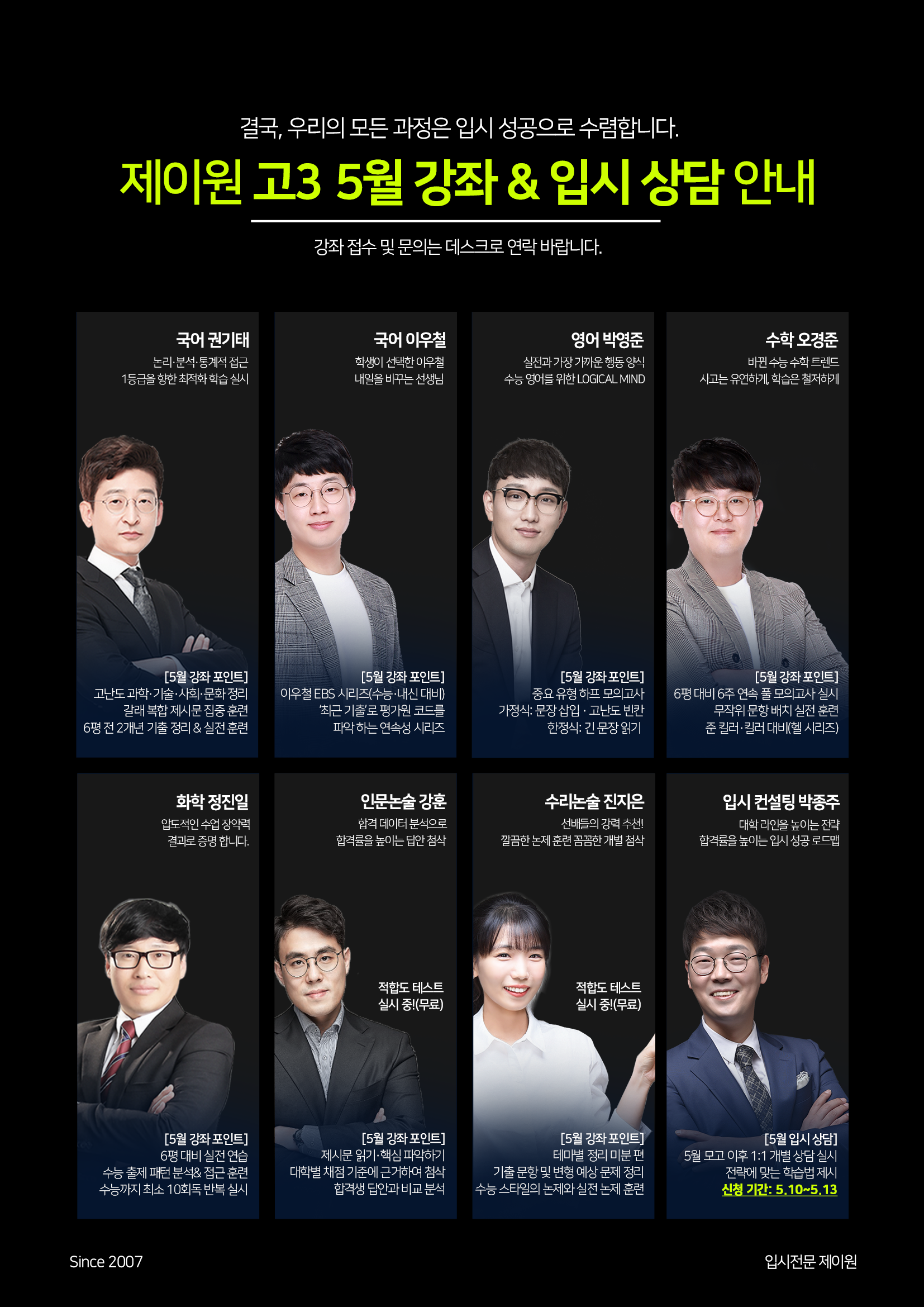 홈 학원안내 프로그램 [강좌안내] 고3 5월 강좌