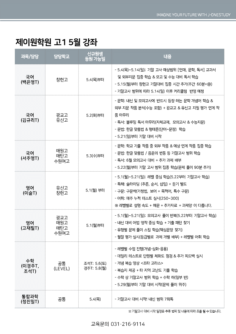 [강좌안내] 고1 5월 강좌