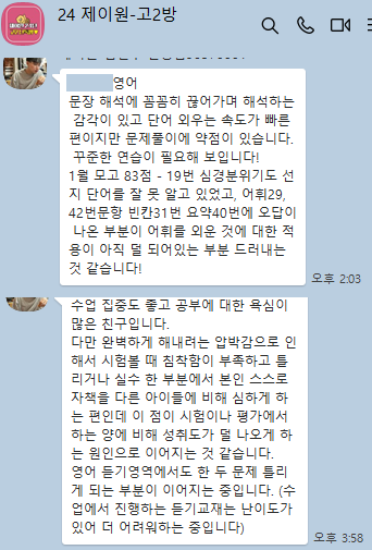 👉제이원학원 민우쌤은 학생별 특징을 세세하게 파악하여 취약점 보완 및 점수상승 방해요소를 제거하기 위해 애써주고 계십니다♥