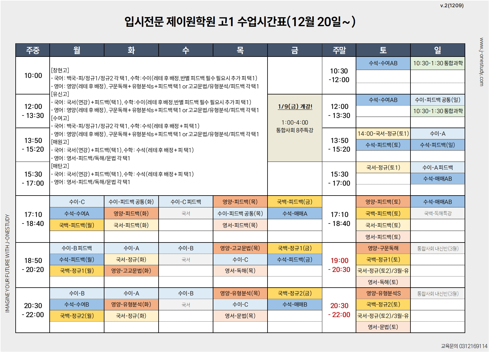 26년 고1 시간표(25.12.20~)