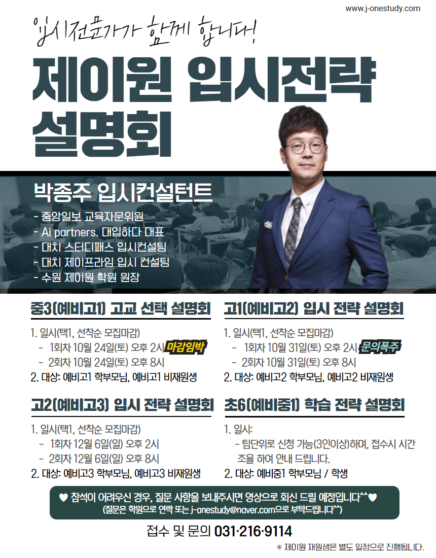 제이원 학원 고등부 예비반 설명회