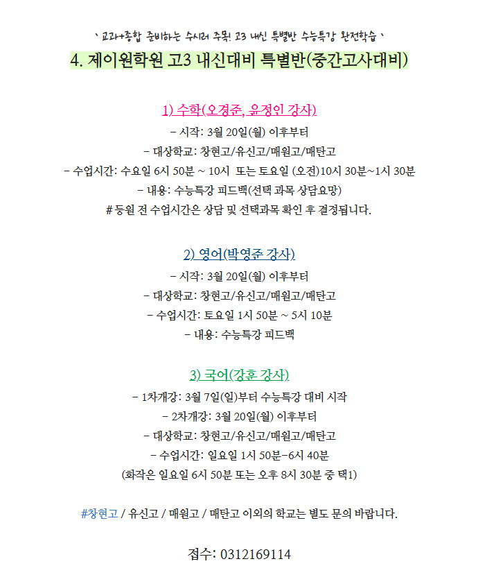 수집항목 : 이름, 핸드폰번호, 학교, 학년, 계열