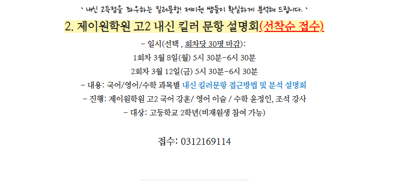 입시의 모든 것 제이원 구루은(는) 이용자의 개인정보를 허락 없이 이용하거나 제3자에게 제공하지 않습니다.
