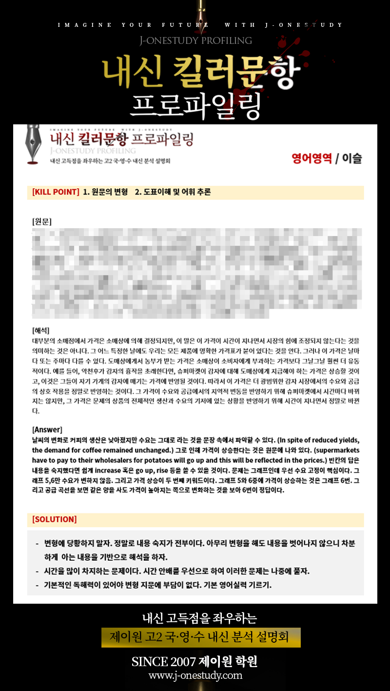 수원입시학원 제이원학원 고2 내신 킬러문항 설명회​