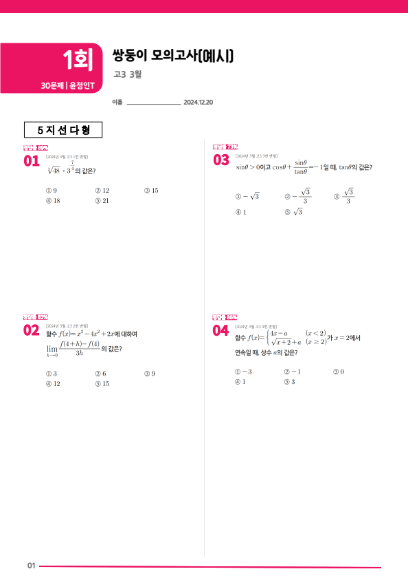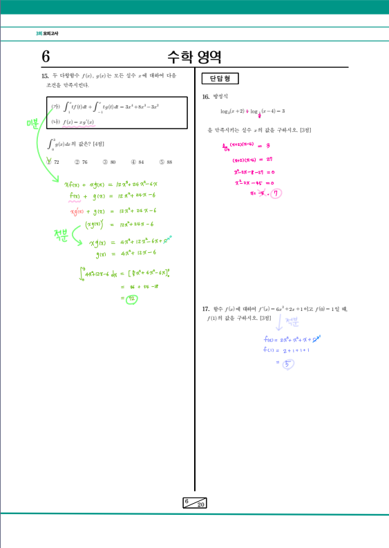 윤정인 선생님 수업을 들으면 개념이 잘 잡혀서 심화 문제의 접근도 가능하다. 그리고 개념을 배울 때마다 과제를 내주셔서 개념과 나올 수 있는 유형들이 전체적으로 잘 잡힌다. 선생님의 수업을 듣고 수학 성적이 많이 올랐고, 수학에 대한 자신감이 생겼다.!