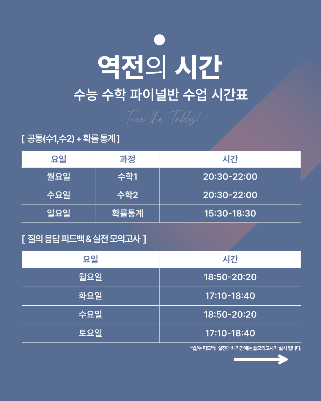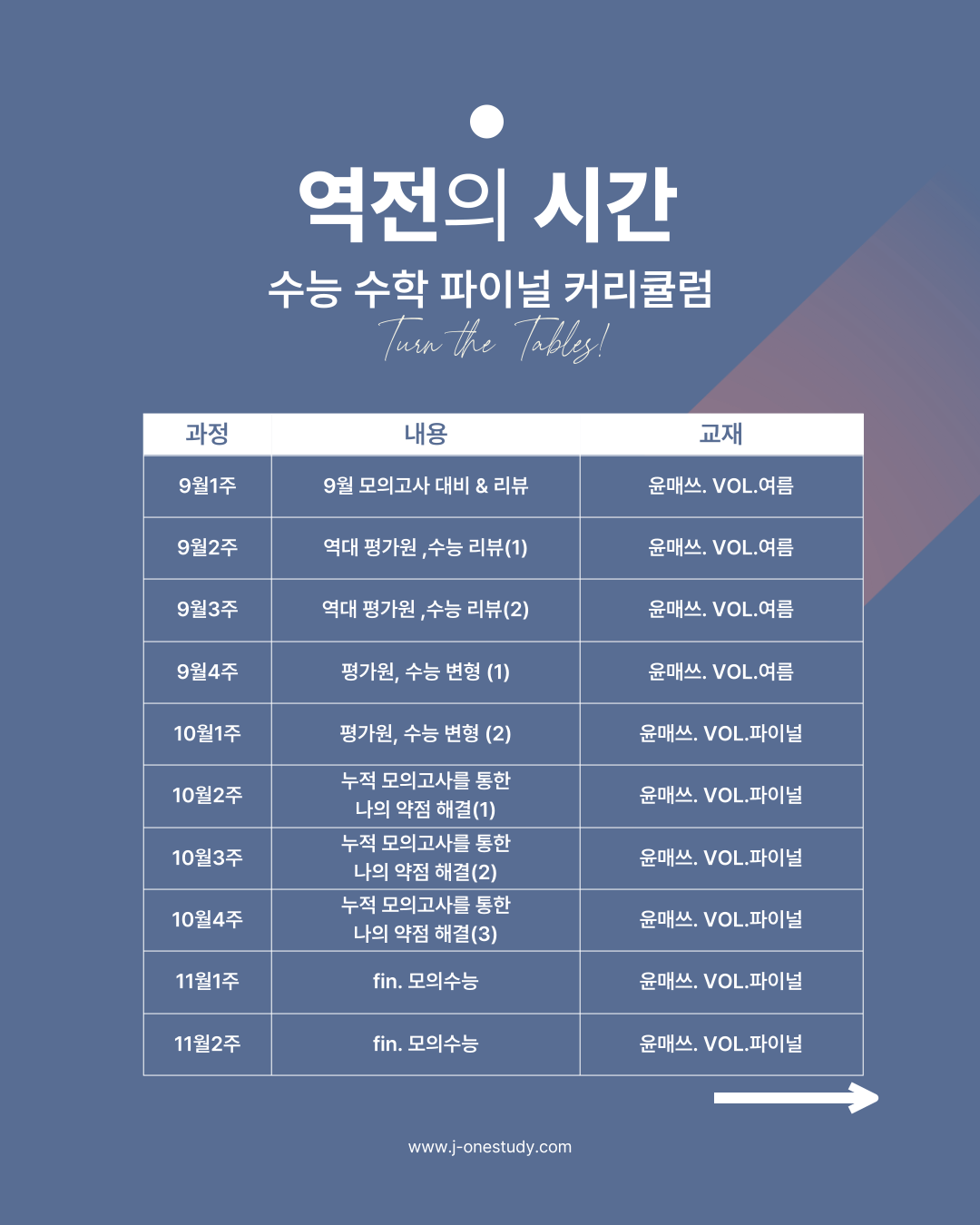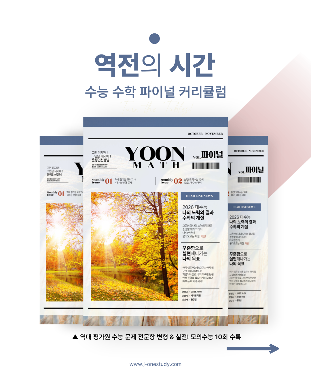 윤정인 선생님 수업을 들으면 개념이 잘 잡혀서 심화 문제의 접근도 가능하다. 그리고 개념을 배울 때마다 과제를 내주셔서 개념과 나올 수 있는 유형들이 전체적으로 잘 잡힌다. 선생님의 수업을 듣고 수학 성적이 많이 올랐고, 수학에 대한 자신감이 생겼다.!