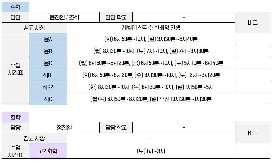 * 국어 담당학교 : 창현/유신/수여/영신/권선 외 - 강훈T, 매원/매탄/이의 - 이종훈T
