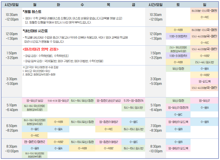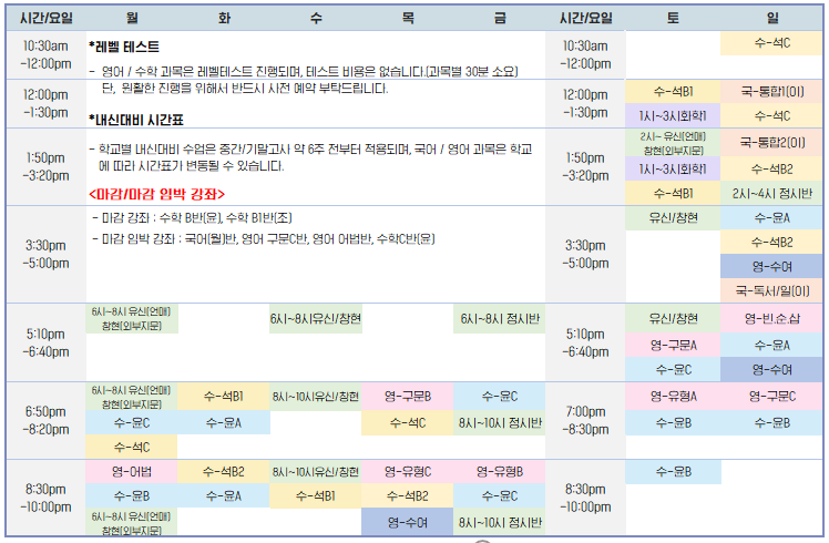 - 마감임박: 강훈T 월반 / 이슬T 어법 / 이슬T 구문C / 윤정인T C반