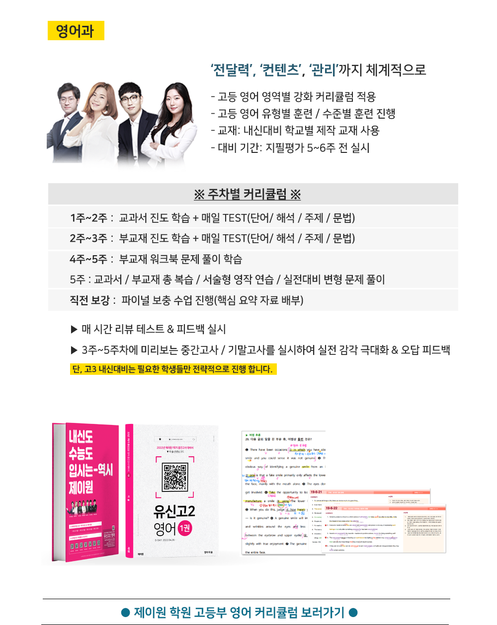 - 수능반은 기존 커리큘럼대로 진행되며, 내신반이 추가 됩니다. (3-1 내신대비가 꼭 필요한 학생만 권함)