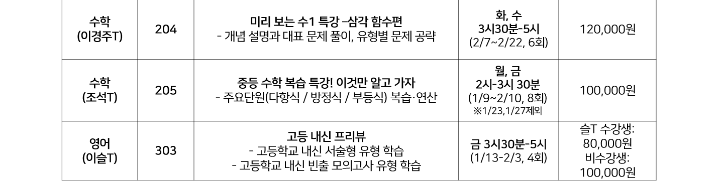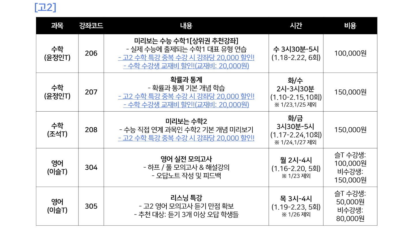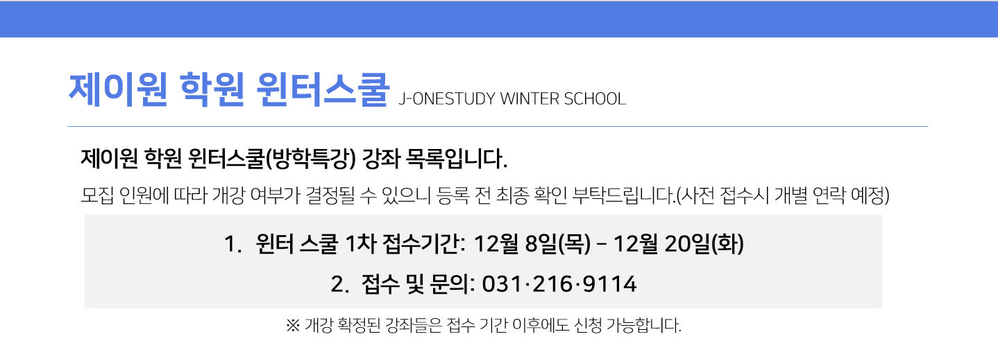 ★제이원학원 윈터스쿨(겨울방학특강)★